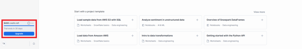 Snowflake는 엔터프라이즈 서비스이지만, 개인 연구자나 개발자가 기능을 테스트하기에 충분한 무료 체험판을 제공한다. 이점이 가장 마음에 드는 부분으로 해당 내용 덕분에 다양한 실험을 해볼 수 있었다.