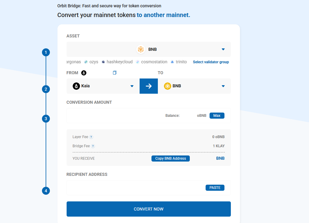 - Orbit Bridge 접속: https://bridge.orbitchain.io